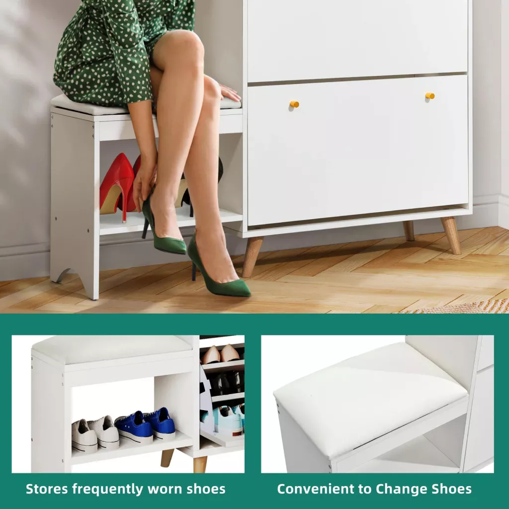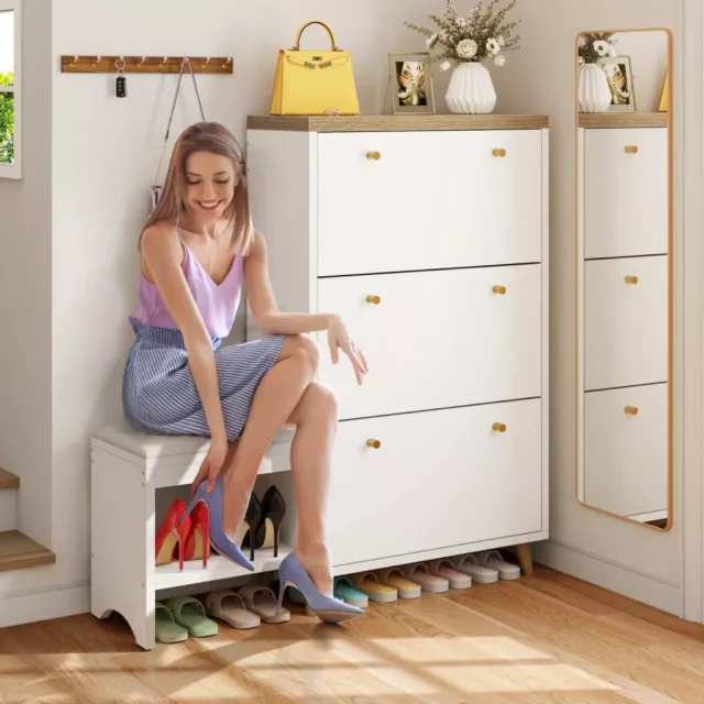 • Space-Saving Design: Equipped with 3 flip drawers and a top shelf, our shoe cabinet maximizes storage space, accommodating 29-38 pairs of shoes.