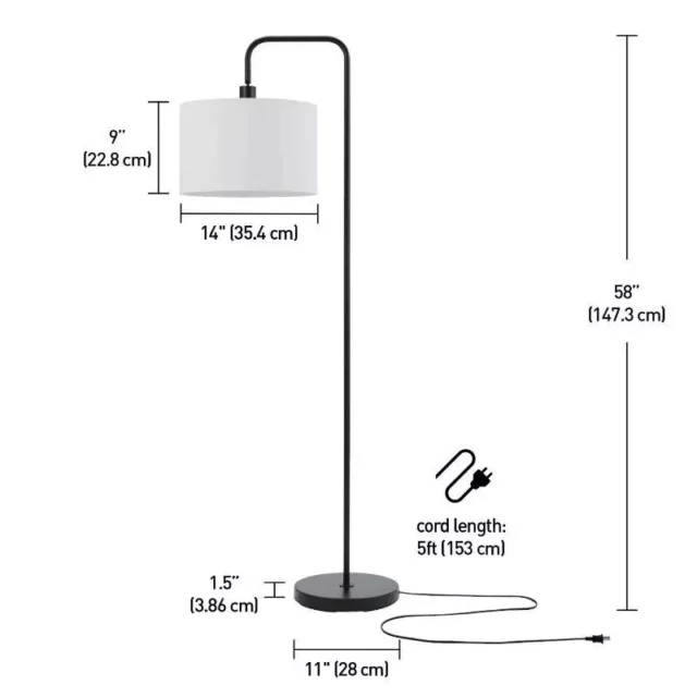 Standing tall at 58 inches, the lamp’s striking matte black finish and white linen shade are not just functional but also form a stylish statement piece. It’s perfect for enhancing the aesthetic of your living room, bedroom, or any space that needs a touch of elegance.
