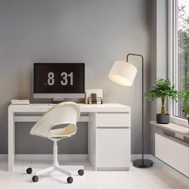 The white linen shade of our Floor Lamp offers a bright yet diffused light, bringing a classic element to any space. It allows for flexibility in your decor choices, enabling you to alter the warmth or coolness of your room’s ambiance with the choice of bulb color temperature.