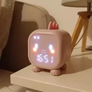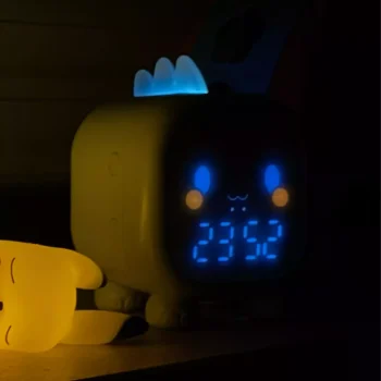 I couldn’t be happier with this dinosaur alarm clock. The design is adorable and my child is excited to use it every day. The voice control feature is very intuitive and makes setting the alarm easy. The night light provides a calming glow that helps my child fall asleep. The alarm sound is perfect – not too loud but still effective. The clock is also very sturdy and well-built, ensuring it will last. It has made a significant improvement in our morning routine, helping my child wake up on time and start the day with a smile. I highly recommend this alarm clock to any parent looking for a fun and practical solution for their child’s room.