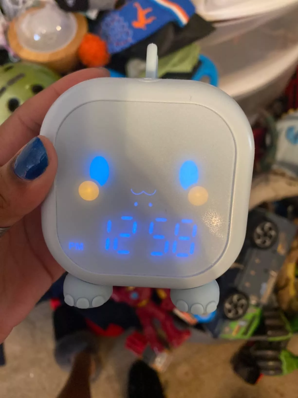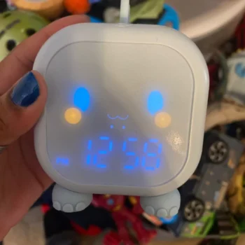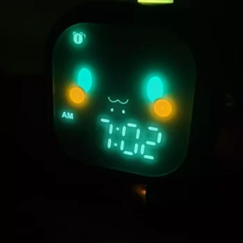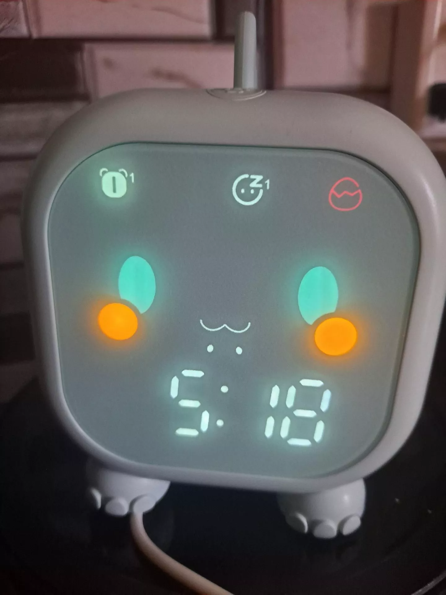 A must-have in our house. It's not just alarm clock but also doubles as a night light. My child loves it!