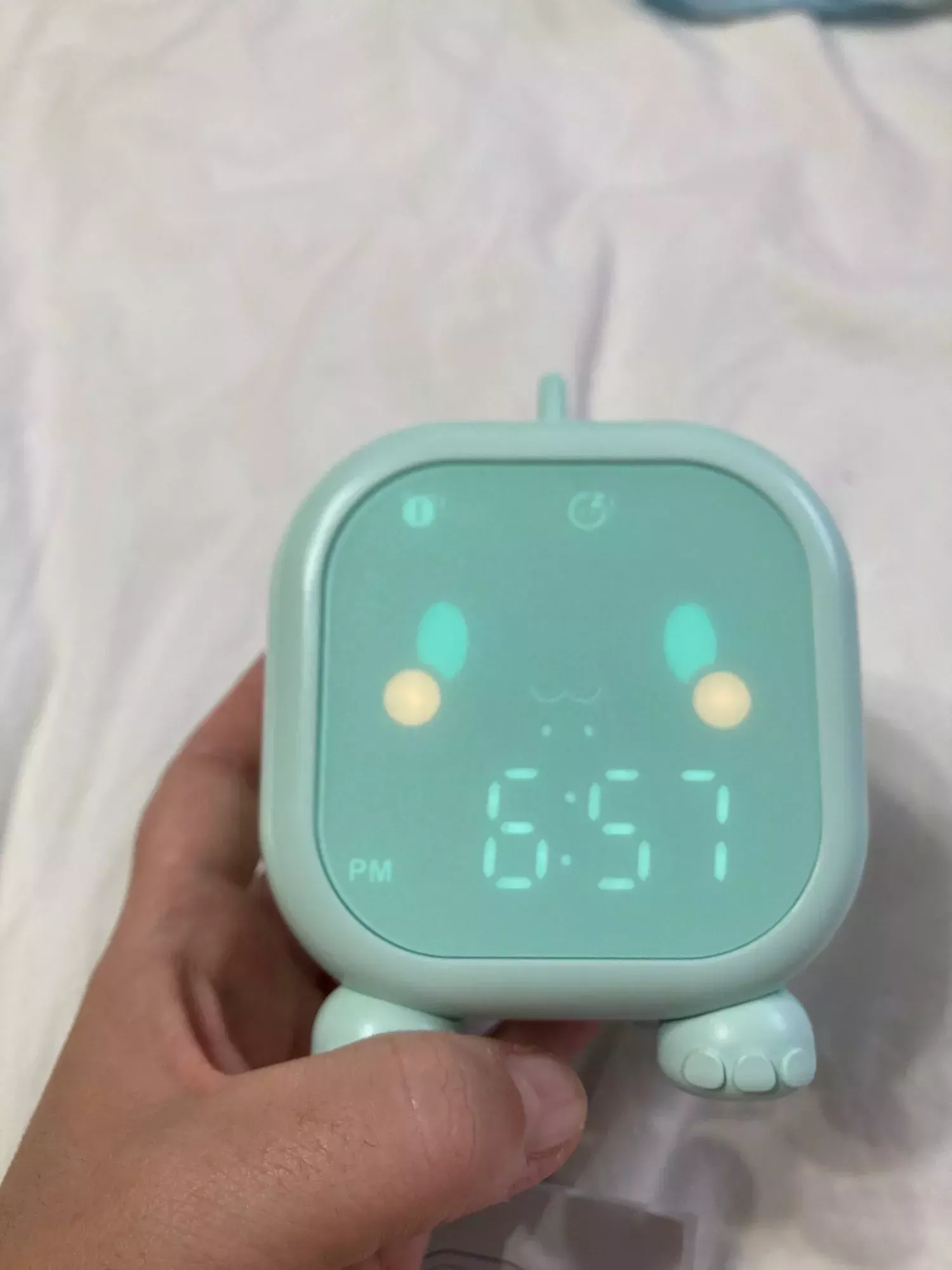This isn't just any ordinary alarm clock; it’s a complete package of fun and functionality packed into a cute dinosaur shape! What really stands out about this product is its voice control technology. My child can easily set his own alarms without needing help from me or his dad. Plus, the night light function eases his fear of darkness at bedtime.