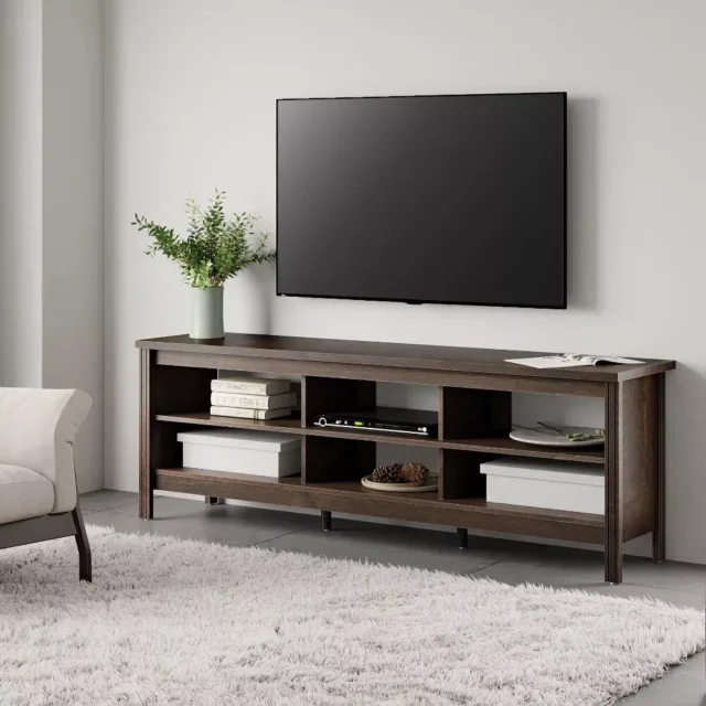 • Ample Storage: Equipped with six open shelves, it provides ample space to store books, magazines, and all your entertainment essentials like a home theater system, media, or gaming devices.