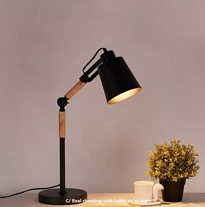 Modern Nordic LED Table Lamp – Adjustable Wooden Desk Light for Bedroom, Study & Decor