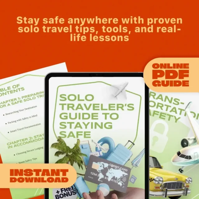 Go farther with fewer worries. Download Solo Traveler’s Guide to Staying Safe now for instant access, follow the checklists, and build your personal plan before your next trip. Enjoy the freedom of solo travel—safely, confidently, and on your terms. This is a digital product; no physical item will be shipped.